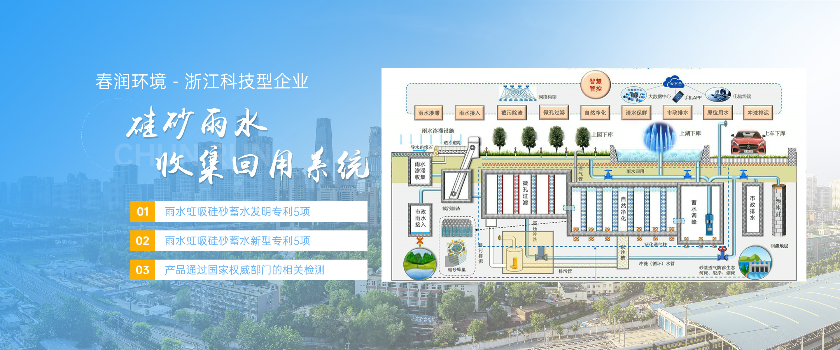 绍兴春润环境工程有限公司主要经营雨水收集回用系统、屋面雨水虹吸排放系统、车库网格海绵调控系统MSC等,是一家集设计、生产、技术咨询、安装及售后服务为一体化的高新技术型企业。我们的雨水收集回用系统引进德国离心式雨水收集器,自行开发了弃流装置、截污装置、过滤装置及智能一体化控制系统等,整套工艺采用“弃流+收集+净化+回用”的处理方式。屋面雨水虹吸排放系统的主要构件为我公司自主研发生产(包括虹吸式雨水斗、偏心变径、45度弯头、135度斜三通、HDPE管道及管道固定金属件等)。
